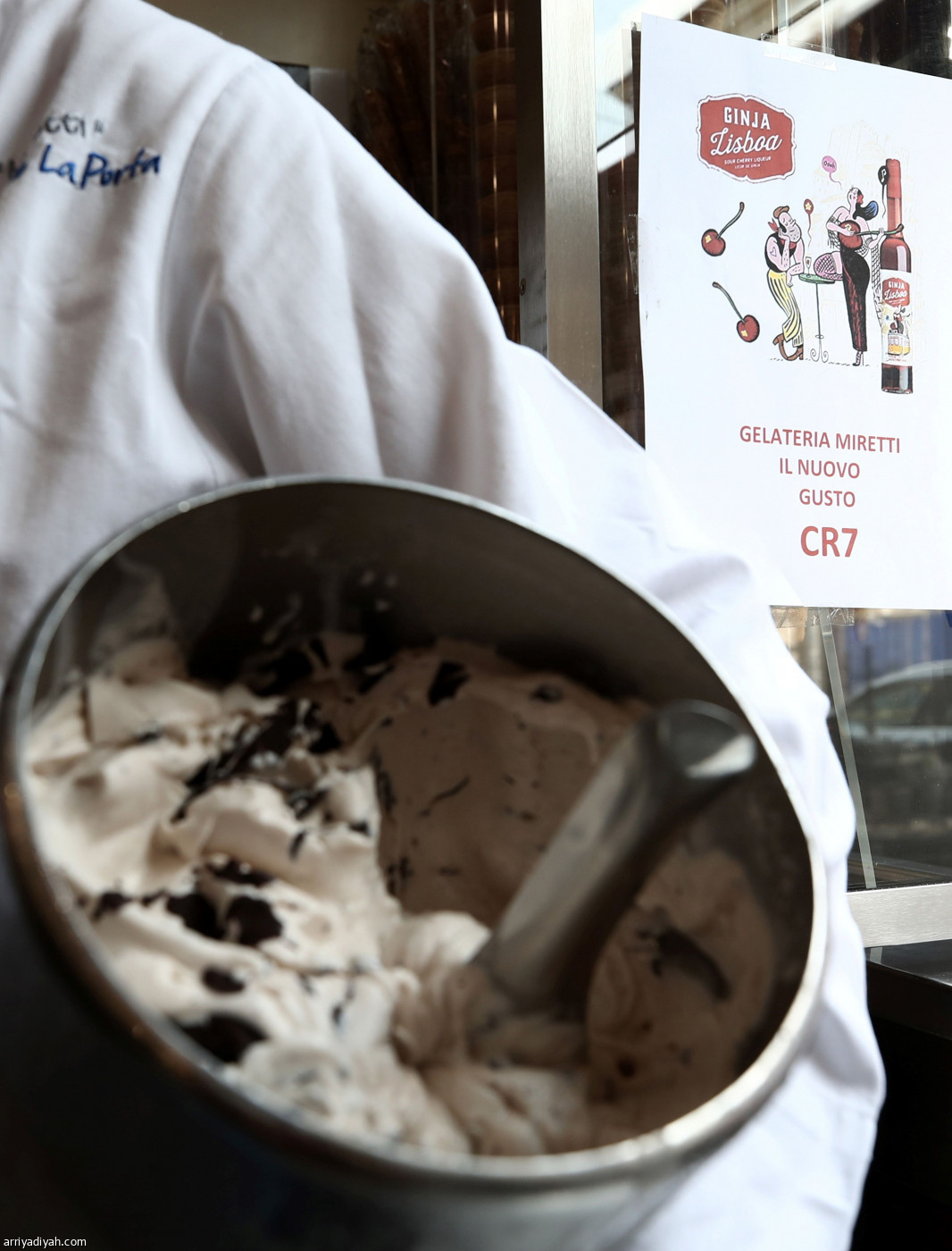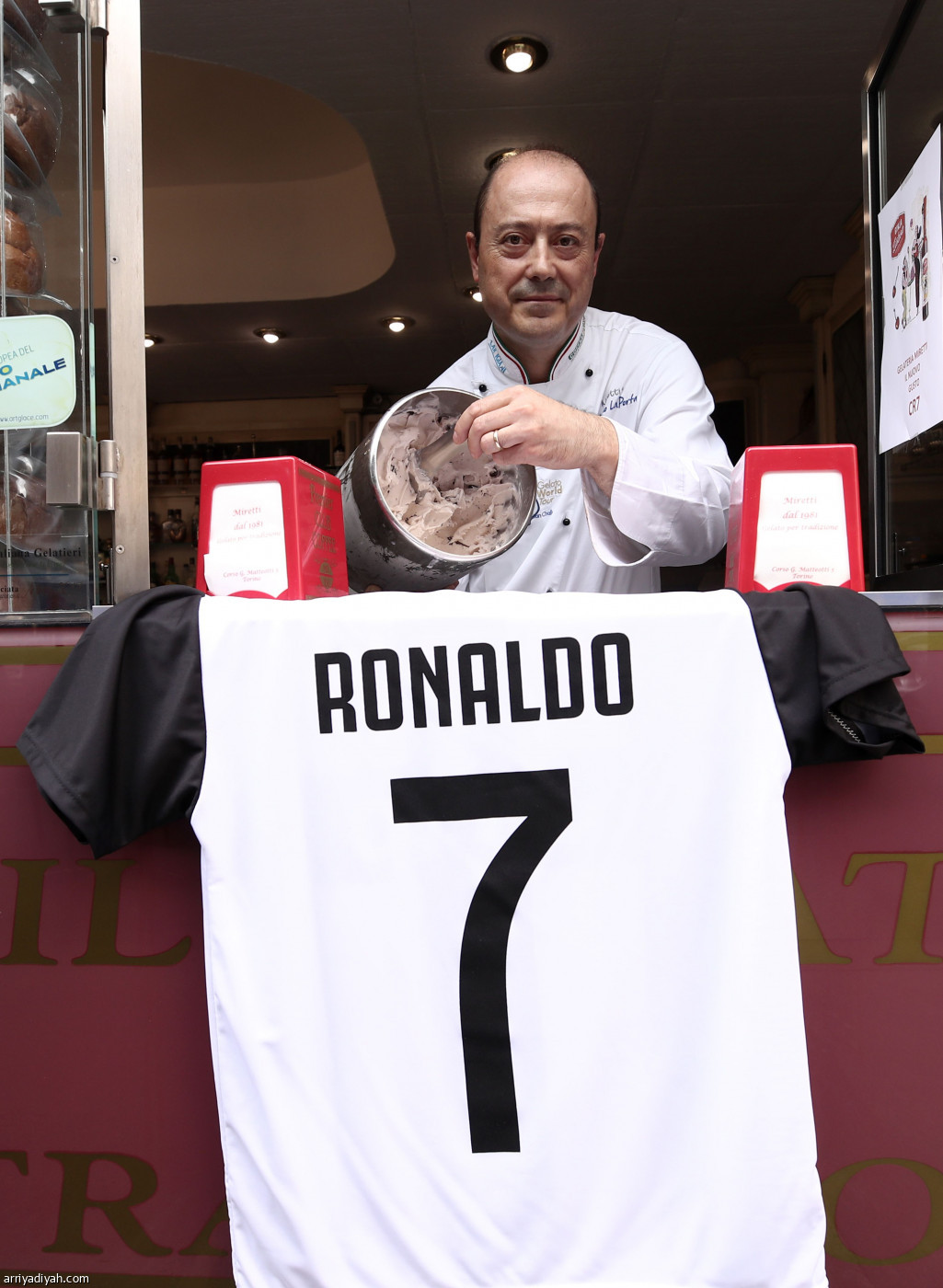 متجر مثلجات في تورينو الإيطالية يستحدث آيس كريم جديد بمناسبة انتقال النجم البرتغالي كريستيانو رونالدو إلى نادي يوفنتوس (تصوير - الفرنسية)..
