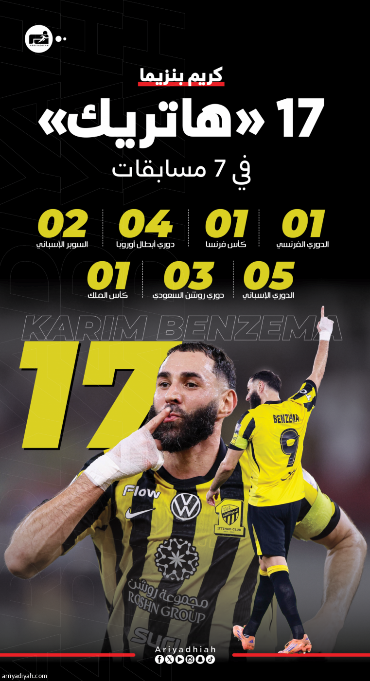 بنزيما.. «هاتريك» رابع مع الاتحاد