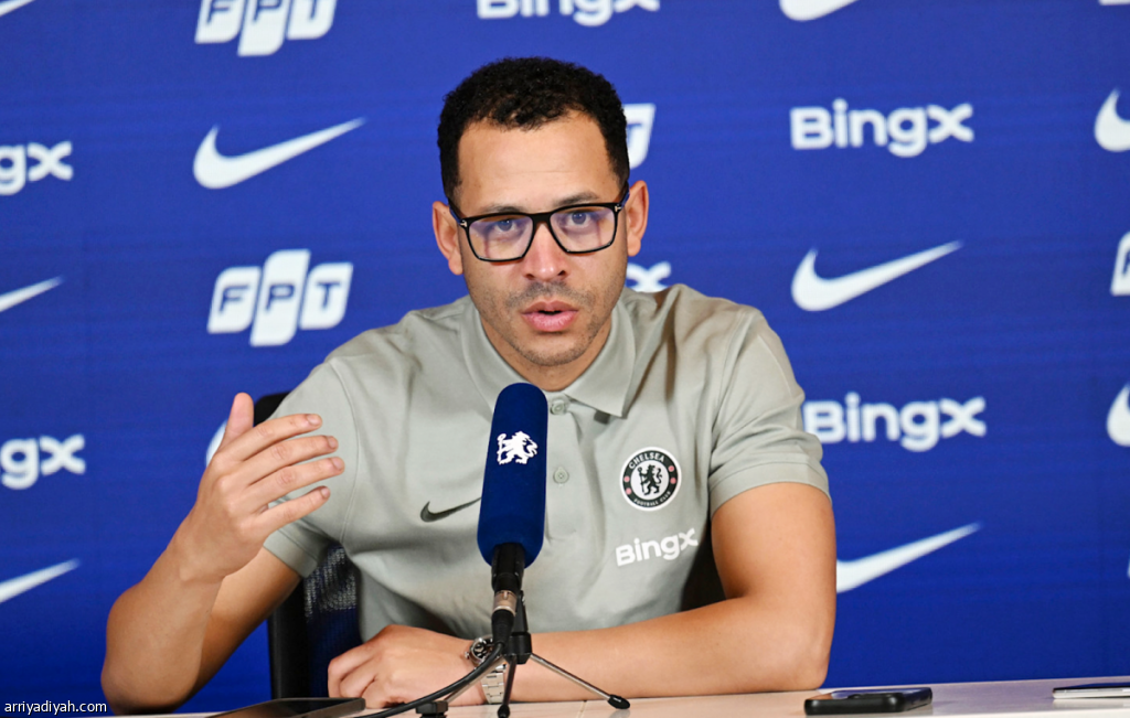 ليام روسينيور مدرب فريق تشيلسي متحدثًا في المؤتمر الصحافي الخميس (المركز الإعلامي ـ تشيلسي)